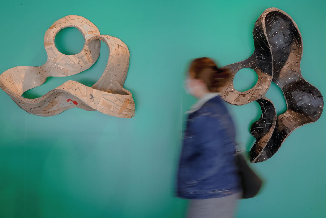 朱卓慧以月影与潮汐比喻人与人之间的聚散,以诗意的艺术语言与平凡不起眼的材料表达她的思绪。天上的月光投影在水波上,相逢在此夜,月以光照耀,水以波回应,一呼一应间,聚散流转。时光荏苒,也许,每一次遇见都是久别重逢。苏国坚以怀旧的建筑元素与当下流行的艺术方式呈现他的想象,把城市景观中渐渐消逝的建筑元素转化为有生命的物种,幻想在现实场景中依附着不同建筑默默地滋长,为城景换上奇异面貌。不论是似曾相识的自然风景,或是如幻似真的城市景观,都勾起我们的记忆。这里你曾来过吗?