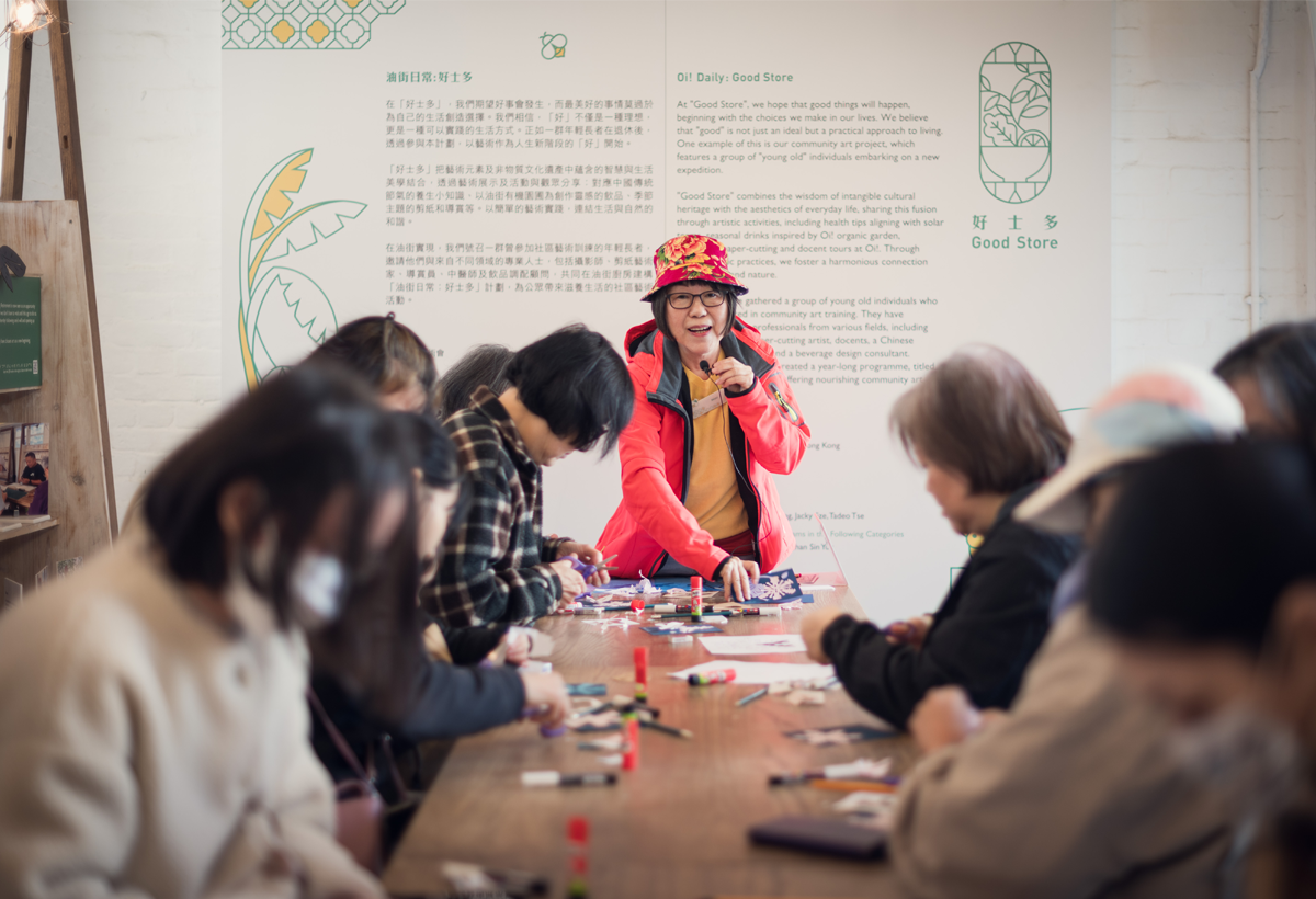 透過藝術展示及一系列社區藝術活動,「好士多」將藝術元素及非物質文化遺產中蘊含的智慧與生活美學結合,與大家分享對應節氣的養生小知識、以油街有機園圃為創作靈感的飲品、季節主題的剪紙等,邀請觀衆在生活日常中細味藝術、感受自然、建立與生活的連結。